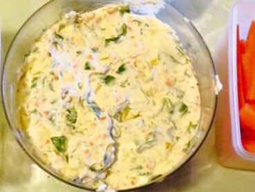 ve making cream cheese dips and spreads with lots of fresh veggies. They are so versatile adding whatever vegetable and seasonings to a block of softened cream cheese. They are very yummy as a spread on a sandwich, or eaten with crackers or chips. They can be cold out of the refrigerator or heated a few seconds in the microwave. I make one of these every couple of weeks all summer long with whatever I've gotten at the farmers market and whatever seasonings I have on hand. I also have several dry dip seasoning mixes that I add to change up the flavors. The possibilities are endless. One of my favorites is cucumber spread and I like using a combination of regular and Armenian cucumbers. Armenian cucumbers are actually in the melon family and have a nice mild flavor. They can be eaten raw or cooked and are great pickled. It's just finely diced cucumbers, cream cheese, a little mayonnaise, seasoned salt, pepper and parsley mix. This last batch I made I added oregano which was really tasty. Sometimes I add lemon pepper. The key is to finely chop or shred the veggies, cut out the seeds in the cucumbers and add a little mayonnaise to make it creamier. My favorite veggies to use are cucumbers, radishes, carrots, celery and some type of greens like kale, spinach or lettuce. I've also used the green parts of bok choy when I've gotten it at the farmers market. Fresh or dried herbs or any combination are great as well. When making a basic dip, I often add shredded cheddar cheese.